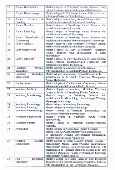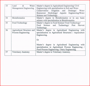 | 48 | Agricultural Extension | Agricultural Extension/ Veterinary Extension/ Dairy Extension/ Fisheries Extension/ Home Science Extension/ Agriculture Communication in Agricultural Sciences/ Rural Development/ Rural Management. |